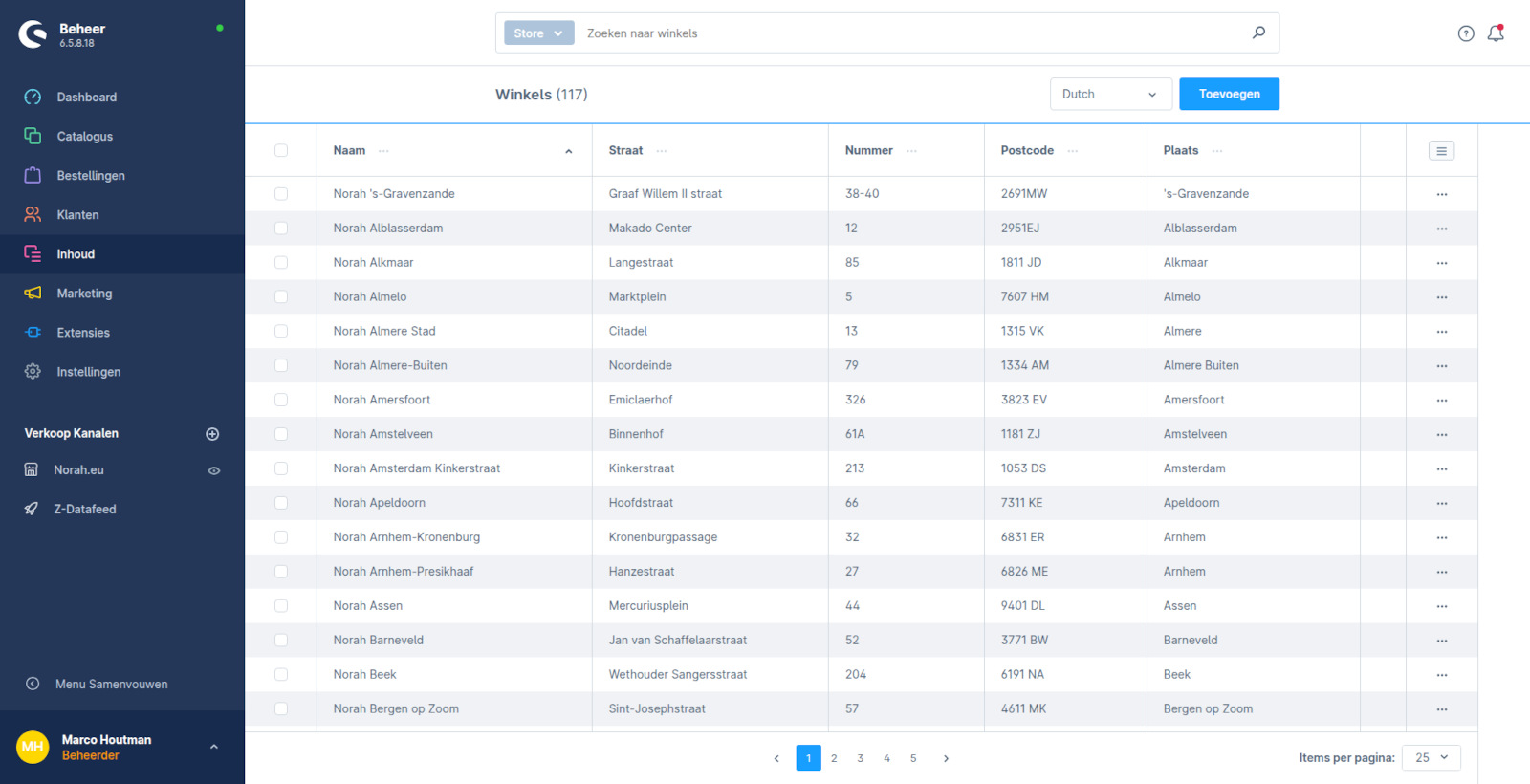 In de webshop vertaalt zich dit tot pagina's waarop de klant direct artikelen in het winkelmandje kan stoppen. Daarbij hebben we het zo gemaakt dat er rekening gehouden wordt met de (beschikbare) maten en de prijzen. Als een maat is uitverkocht of als een artikel in prijs wordt verlaagd dan is dat direct zichtbaar op de webshop.